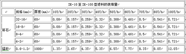 錳砂裝填規(guī)格及數(shù)量表