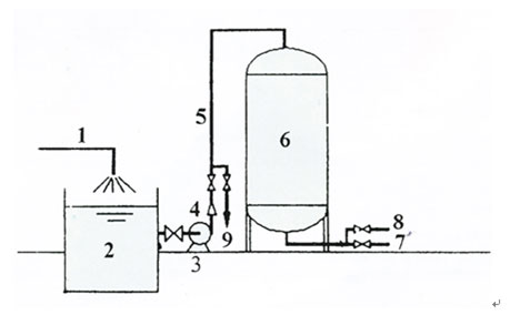 6.除鐵錳過濾器  7.出水管  8.反沖洗進水  9.反沖洗排水