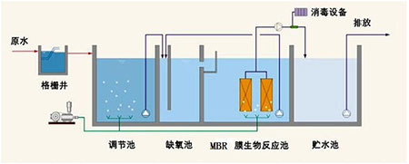 ?。?)調節(jié)池出水用提升泵提升到缺氧池,同時經過曝氣硝化過的污水回流進行反硝化脫氮。出水進入接觸氧化池,通過曝氣進行好氧生化處理同時進行硝化反應。
