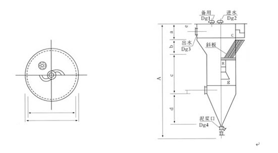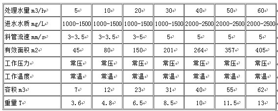 該斜板沉淀器沉淀污水固體、懸浮物、污水經(jīng)加混凝反應(yīng)后由設(shè)備上端進(jìn)水口進(jìn)入設(shè)備,經(jīng)錐形反應(yīng)池混凝形成礬花,逐漸沉降至設(shè)備污泥斗中(設(shè)備可連續(xù)、間斷排泥)形成排泥,在反應(yīng)池中污泥沉降,清水上升至斜板(管)中,并進(jìn)一步沉降污水中的顆粒,清水上升至溢流槽后出水。